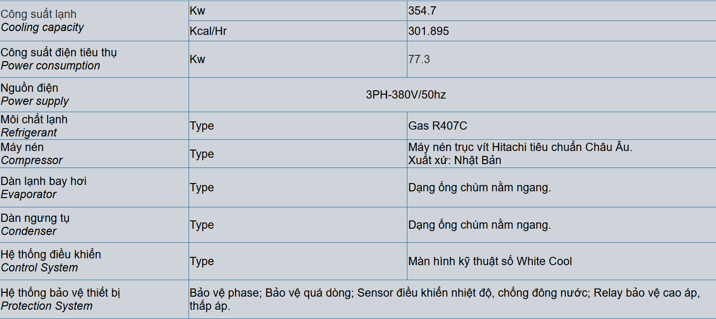 2. Thông tin máy làm lạnh nước chiller 100HP