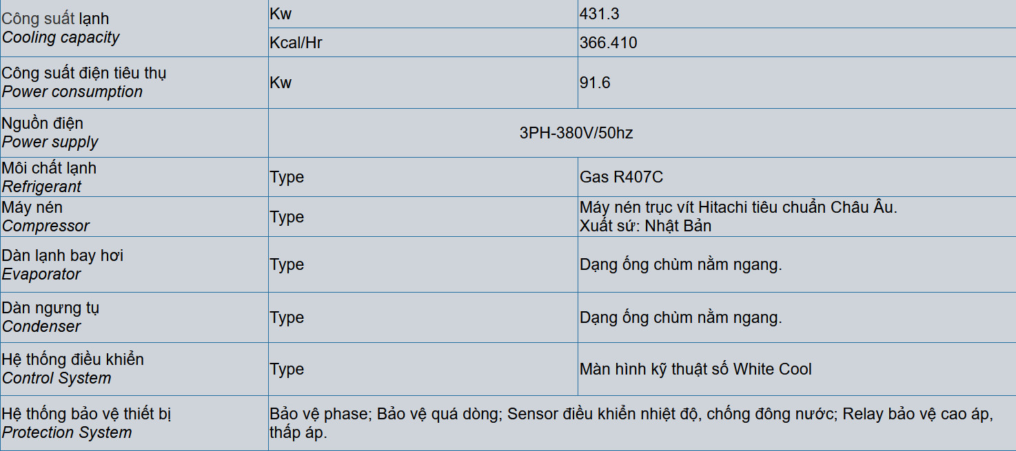 2. Thông tin máy làm lạnh nước chiller 120HP